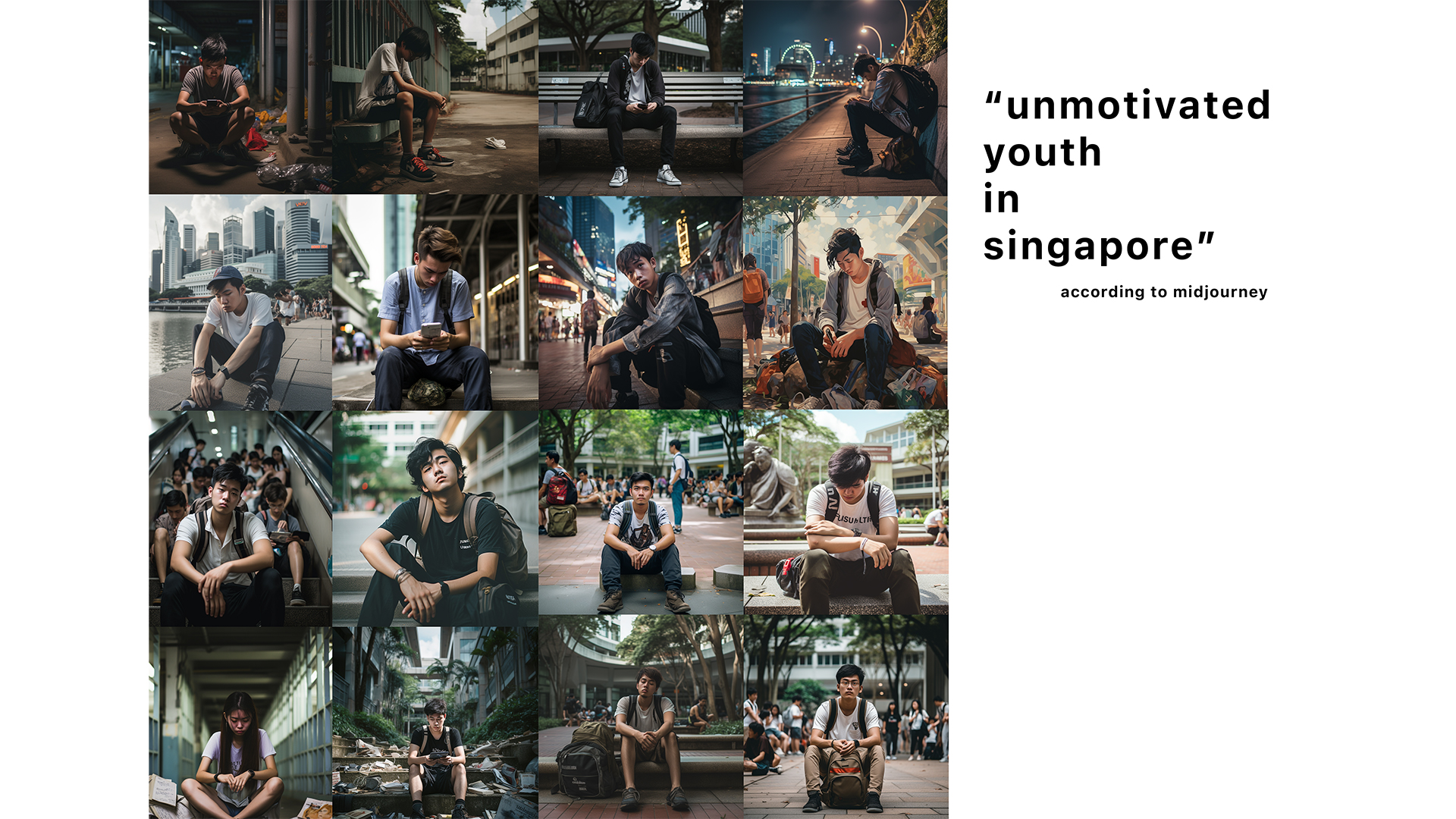 Since I still had my MidJourney subscription, I wanted to take a look into types of generated images I would get when I prompt it to imagine unmotivated or motivated youths. There was no actual goal for this. Instead, it was just to get me started.